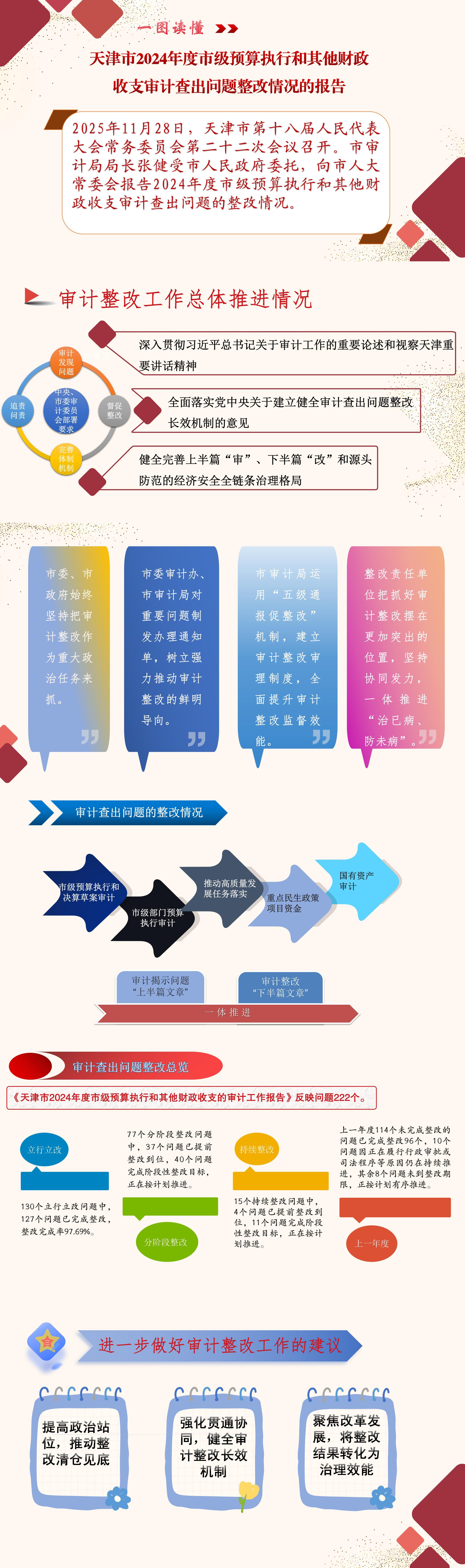 【图解】《天津市2024年度市级预算执行和其他财政收支审计查出问题整改情况的报告》图解